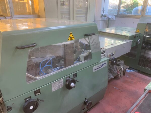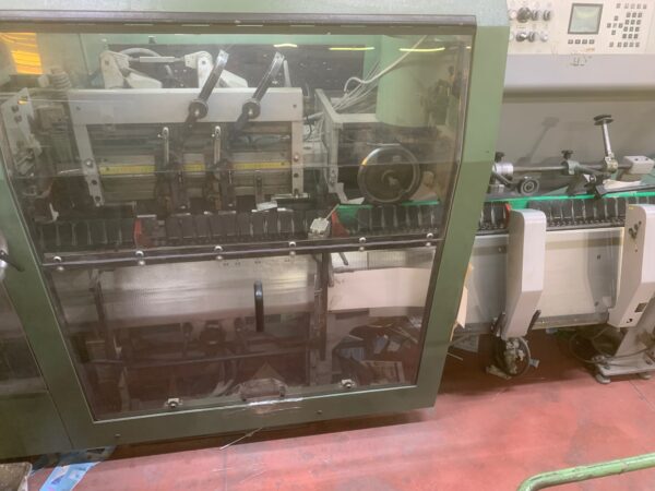 CUCITRICE A PUNTO METALLICO MULLER MARTINI MOD.1509 1 stazione di puntatura a mano 4 mettifogli piegacopertine 1528 2 teste cucenti trilaterale uscita cassetto visibile in funzione
