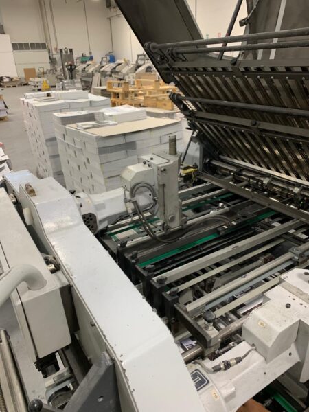 Heidelberg Stahlfolder KD 78 Mettifoglio a pila per palletts 6 tasche parallele 2 coltelli incrociati 8° e 16°  tasca parallella al primo coltello per produzione 12° e 24° uscita con calandra Heidelberg SBP.D